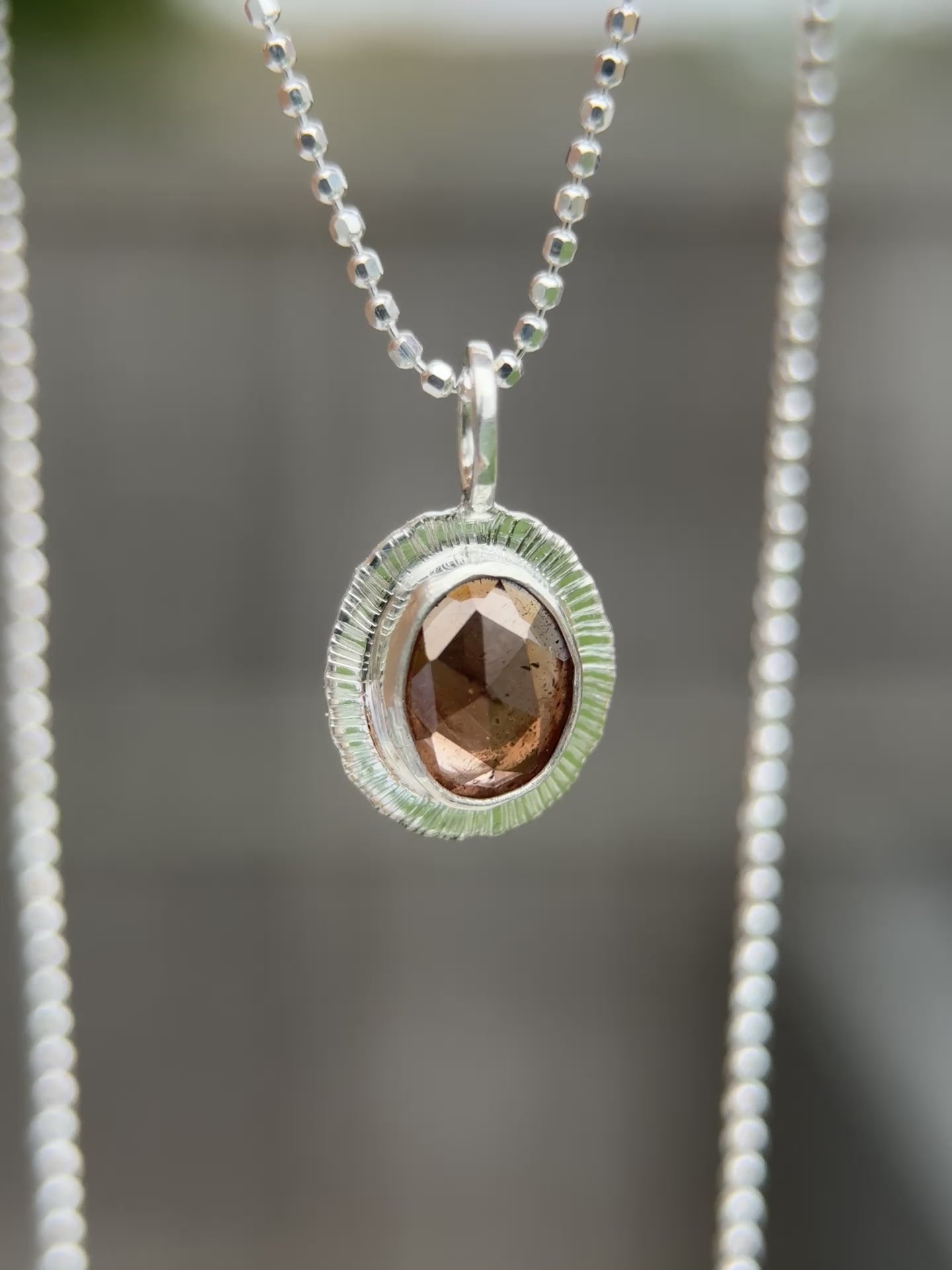 The stone is responsibly sourced and the pendant itself was handcrafted from 100% recycled sterling silver sheet in my garden studio.