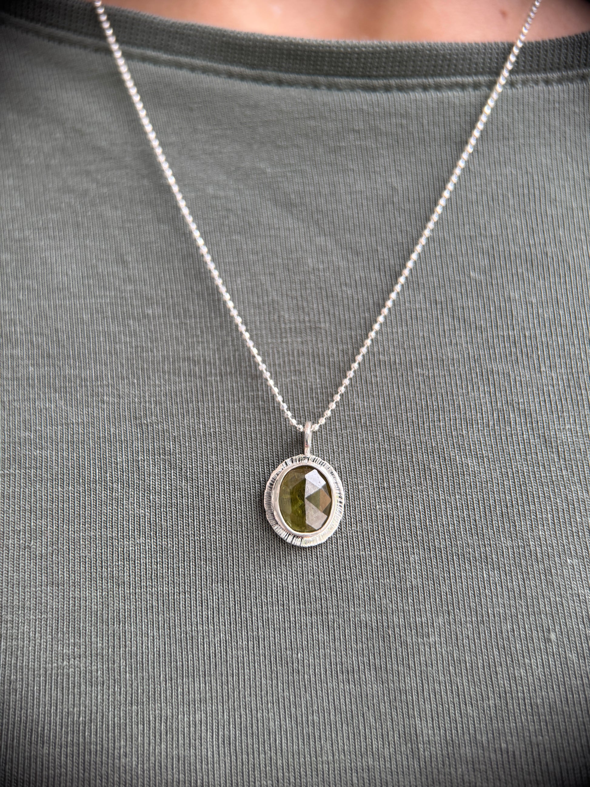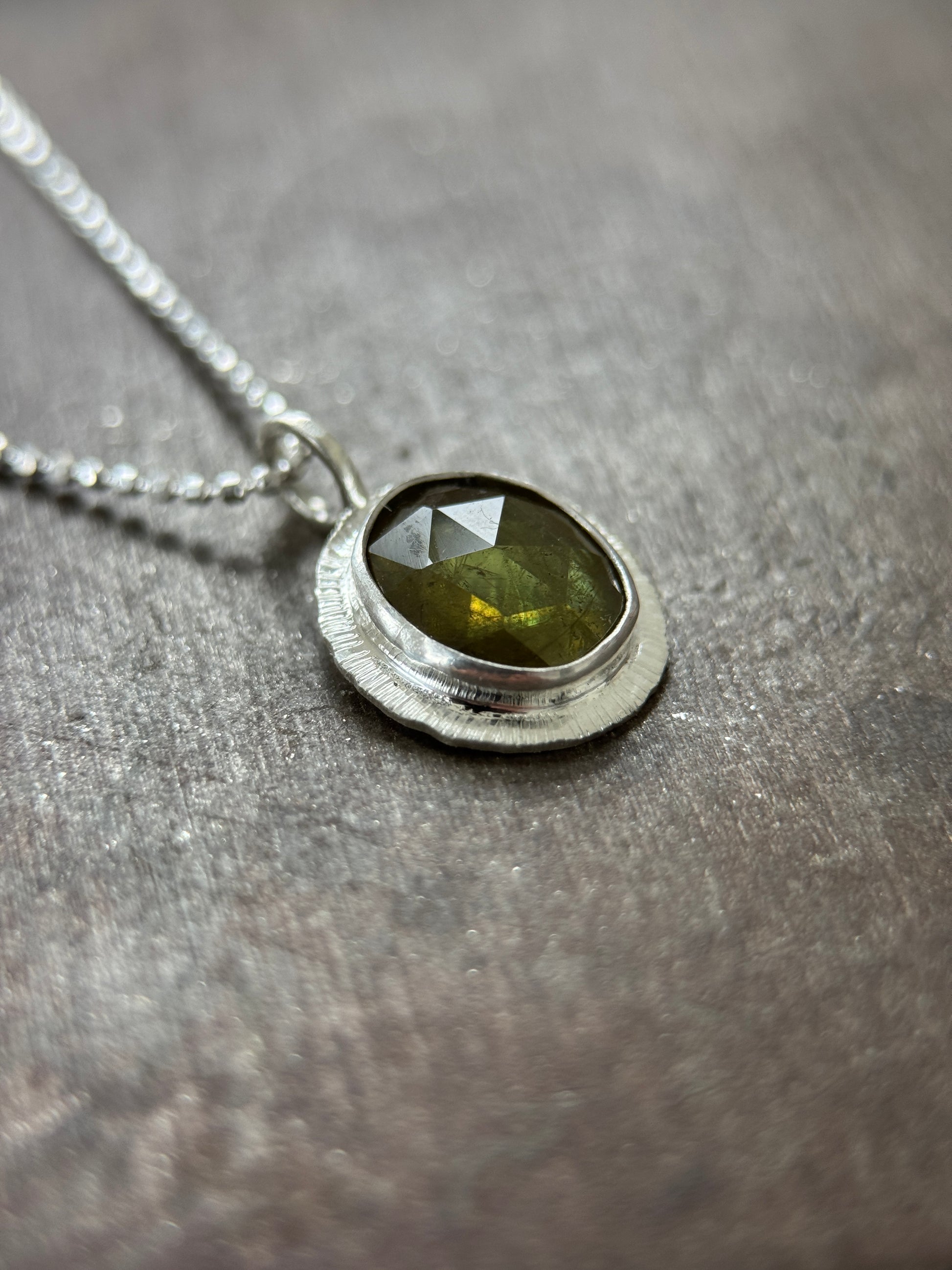 The stone is responsibly sourced and the pendant itself was handcrafted from 100% recycled sterling silver sheet in my garden studio.