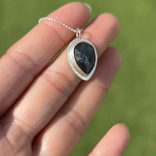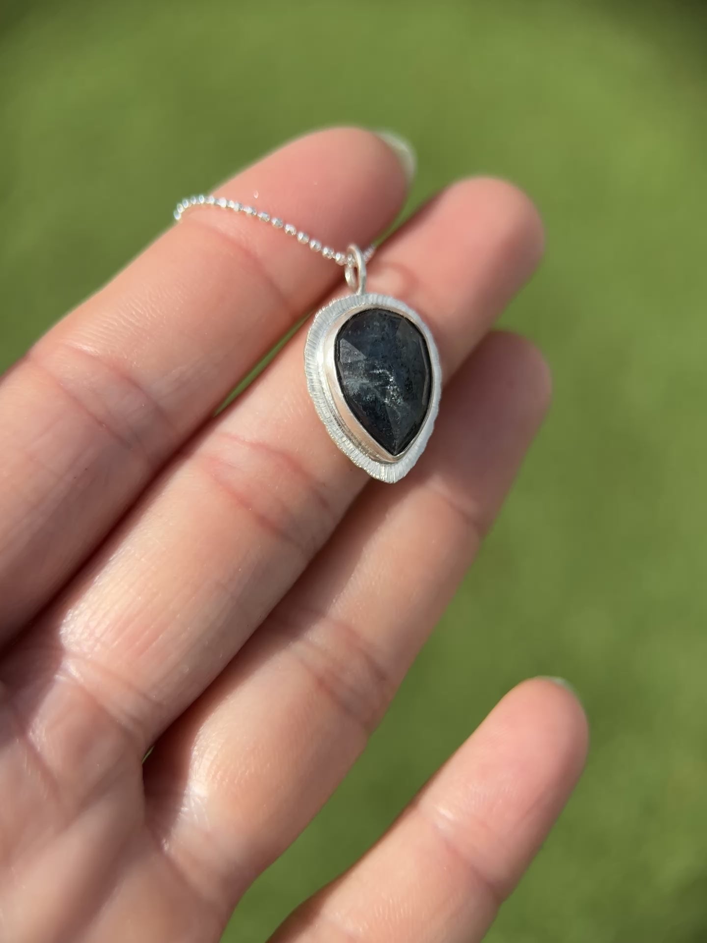 The stone is responsibly sourced and the pendant itself was handcrafted from 100% recycled sterling silver sheet in my garden studio.
